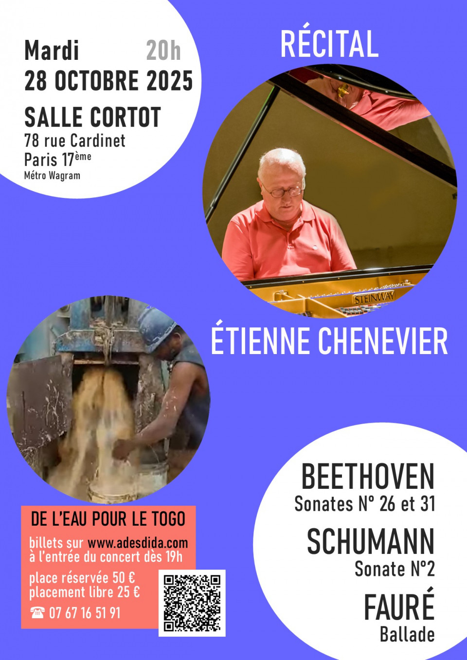 Récital exceptionnel de piano Salle Cortot à Paris le mardi 28 octobre 2025.